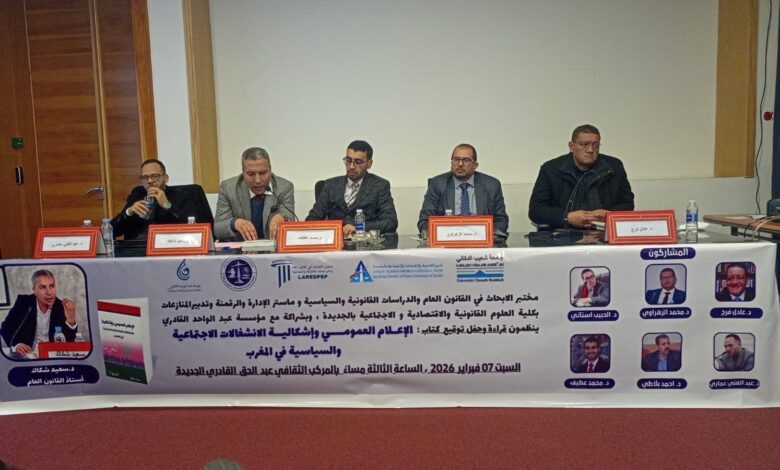 احتضن المركب الثقافي عبد الحق القادري بمدينة الجديدة، يوم السبت 7 فبراير 2026، على الساعة الثالثة بعد الزوال، لقاء علميا تمثل في قراءة أكاديمية وحفل توقيع كتاب “الإعلام العمومي وإشكالية الانشغالات الاجتماعية والسياسية في المغرب” للدكتور والكاتب سعيد شكاك.