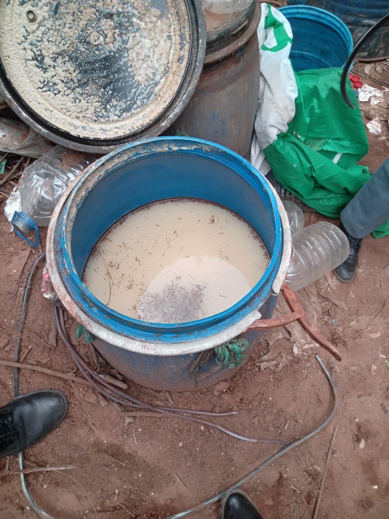 وتمكنت العناصر المتدخلة من حجز كميات مهمة من المواد والمعدات المستعملة في عملية التقطير، من بينها:
