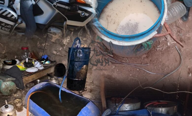 في عملية أمنية نوعية، داهمت عناصر من لواء أولاد فريج، مساء اليوم الأربعاء، ورشة سرية مخصصة لتقطير مشروب “الماحيا” (البراندي التقليدي)، وذلك بمنطقة الدكتور الفراة قرب سي حسين بن عبد الرحمن، التابعة لقضاء أولاد حمدان بدائرة سيدي إسماعيل، إقليم الجديدة.